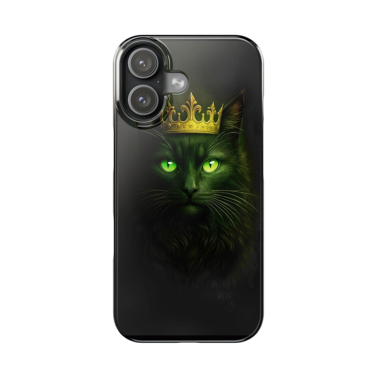 This slim phone case features a regal black cat with a crown design, giving off a mysterious and elegant vibe. Perfect for cat lovers or anyone who enjoys a touch of gothic style in their accessories. Ideal for iPhone 17 series models, this phone case is a great addition to your phone protection collection. Suitable for adults and makes a great gift for Halloween or anyone who loves unique phone accessories.